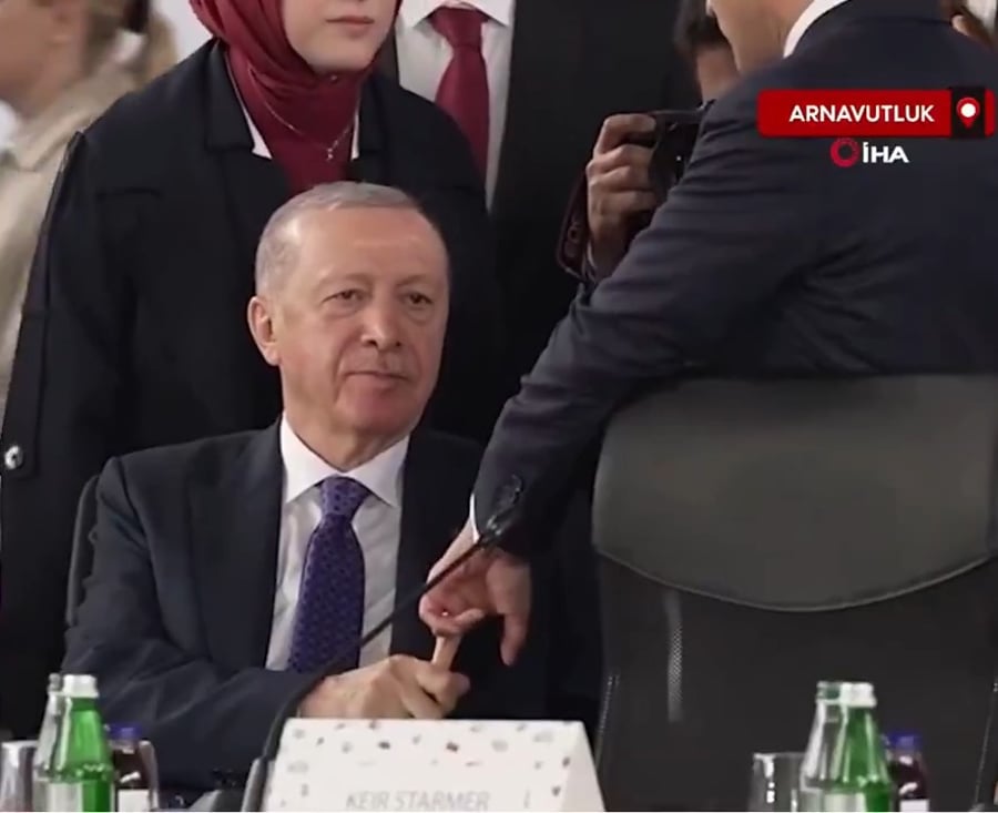 במהלך פסגת הקהילה הפוליטית האירופית שנערכה באלבניה, נרשם רגע מביך בין נשיא טורקיה רג'פ טאיפ ארדואן לנשיא צרפת עמנואל מקרון — שבו נראה ארדואן מאותת על שליטה וכוח מול עמיתו הצרפתי. האירוע צולם במצלמות הווידאו ומשך תשומת לב ברשתות החברתיות.