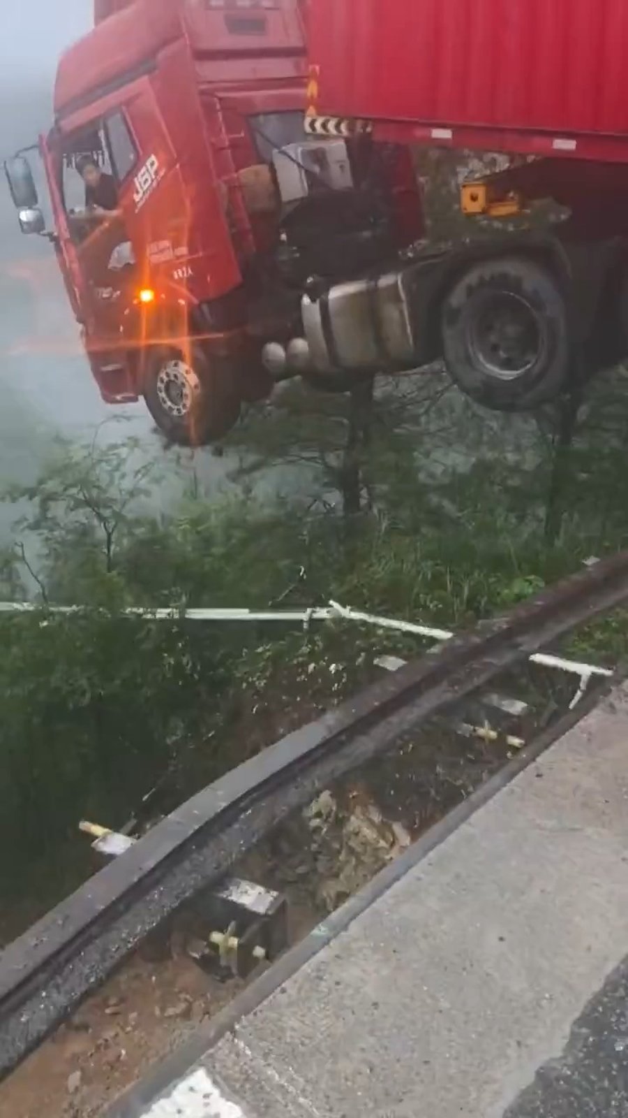 נהג רכב כבד נותר תלוי באוויר לאחר שגשר קרס בדרום-מערב סין, בעקבות מפולות עפר עוצמתיות שנגרמו מגשמים חריגים.