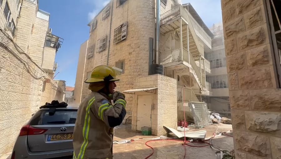 לוחמי האש פועלים בשעה זו (רביעי) בשריפה שפרצה במתחם ישיבות ברחוב חגי, בשכונת גאולה בירושלים.
