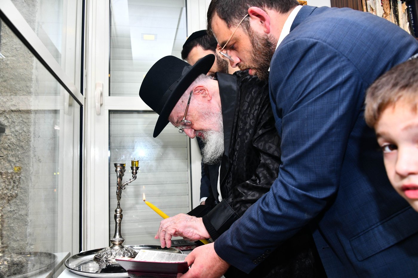 חבר המועצת הגאון רבי מאיר צבי ברגמן, מדליק בחלון ביתו, זמן ההדלקה הוא כעשר דקות לאחר השקיעה כדעת מורו ורבו בעל החזו"א זיע"א | לאחר ההדלקה ישב הגרמ"צ, אל מול פני המנורה לשירת "מעוז צור" ואמירת "ויהי נועם" | תיעוד (עולם הישיבות)