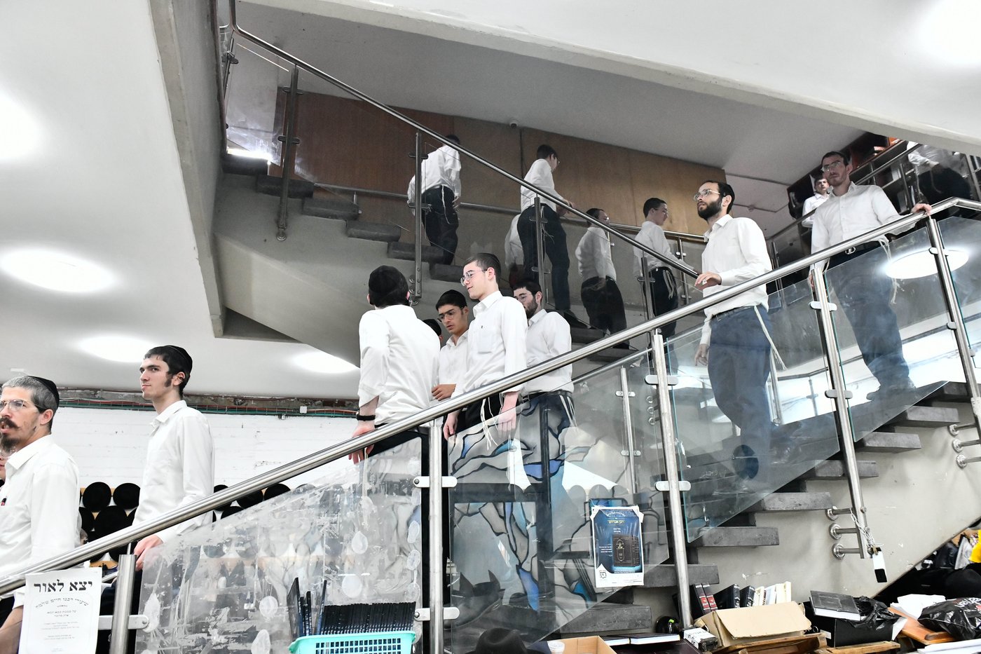 כמדי שנה נהרו המוני תלמידים לחזות בעבודת ראש הישיבה הגאון רבי ברוך דב פוברסקי במעמד הדלקת נרות חנוכה | השנה, לאור הדחק, הוצבה לראשונה גדר לפני השולחן של החנוכייה כדי שלא תיפול ולא תינזק (חרדים)