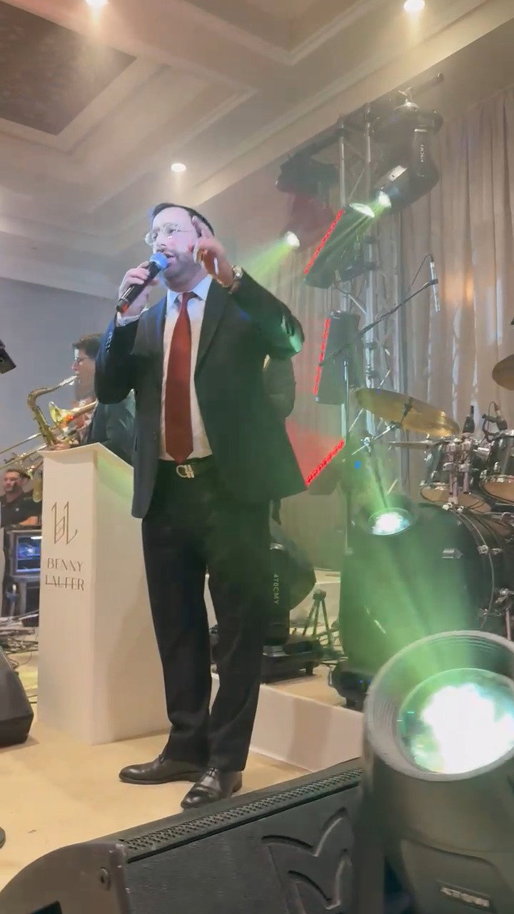 הזמר והיוצר מוטי איידנסון מקפיץ בשירה בחתונת נכד הרבנית לאה קולדצקי.