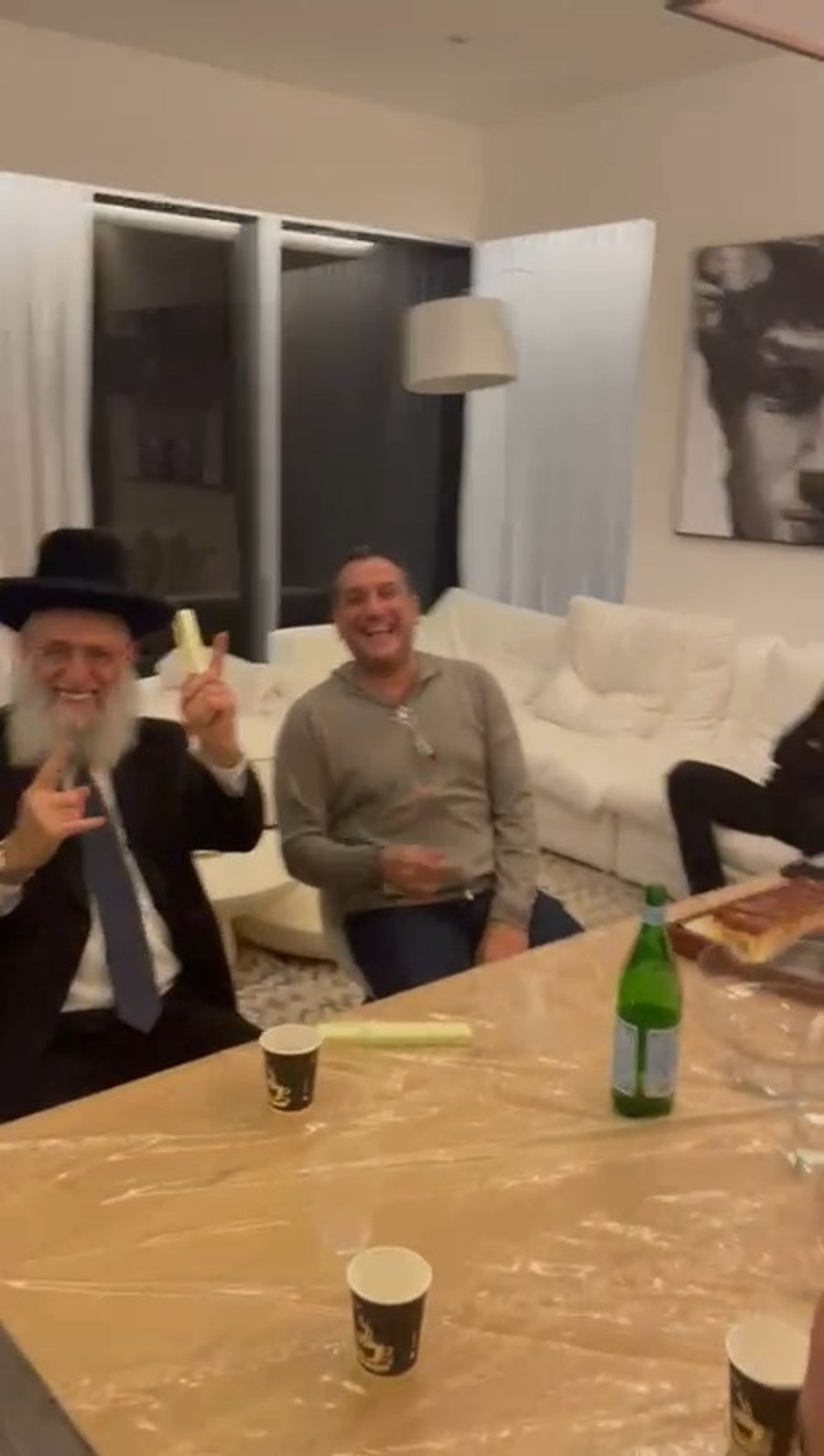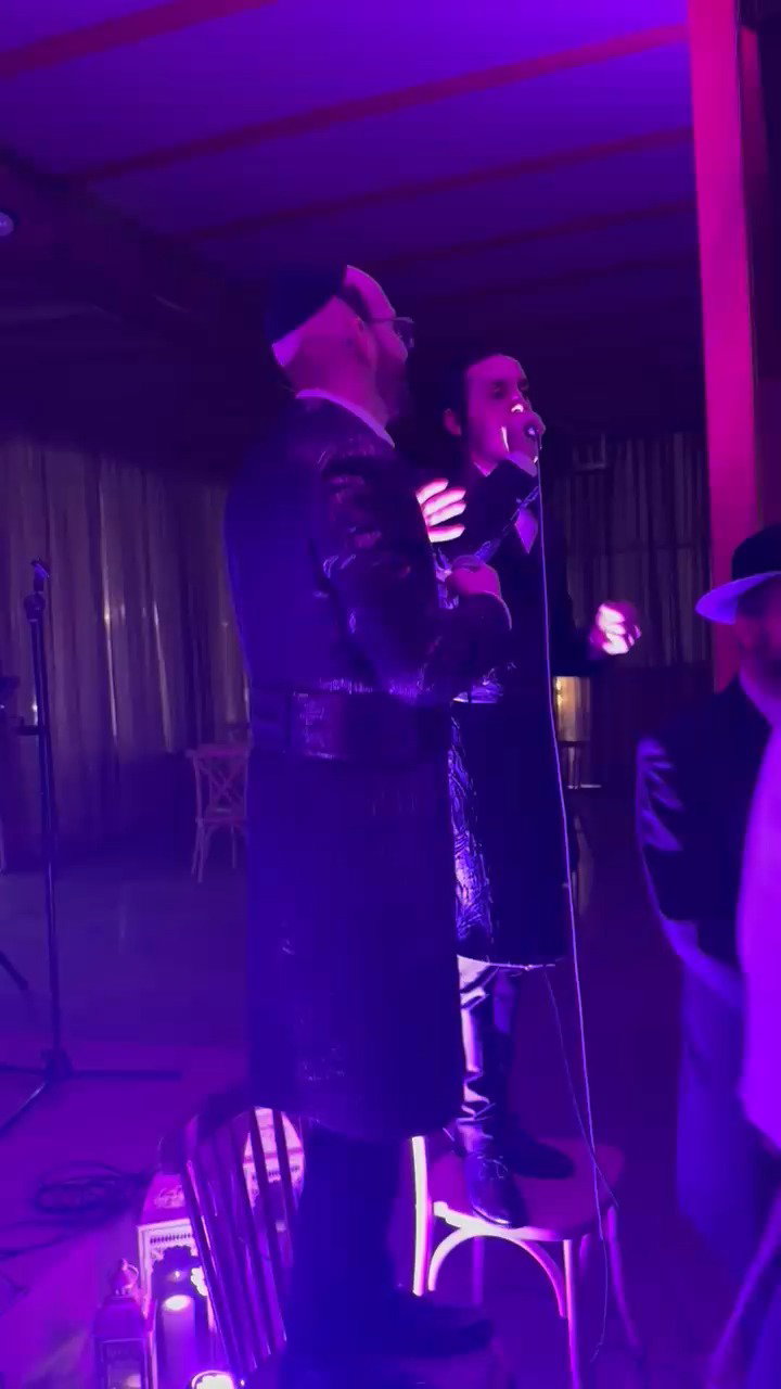 הנגיד החרדי, ישראל אלחנן (חוני הרצקא), מפגין כישורי שירה באירוע פרטי בניו ג'רזי שבארצות הברית, יחד עם הזמר יעקב שוואקי.