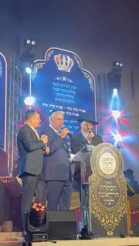 הגאון הרב שלום ארוש ראש מוסדות 'חוט של חסד' והזמר קובי פרץ, בדואט לשיר: "השם יתברך תמיד אוהב אותי", באירוע פרטי באולמי 'דוריה'.