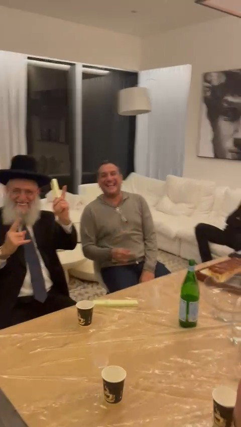 הזמר חיים ישראל בשירת: "לך אלי תשוקתי", יחד עם חבר מועצת חכמי התורה של ש"ס וראש מוסדות 'אור החיים' הגאון רבי ראובן אלבז, בקביעת מזוזה בביתו של איש העסקים ארי הלוי.