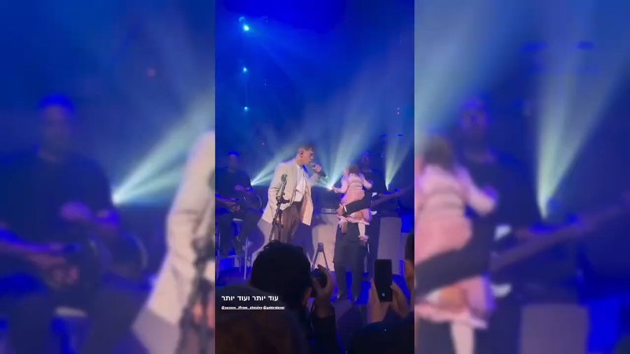 הזמר משה קליין בביצוע מיוחד לשיר: "לאבא שלי יש סולם", בברית לבנה של הפאנית מירב מלכה.