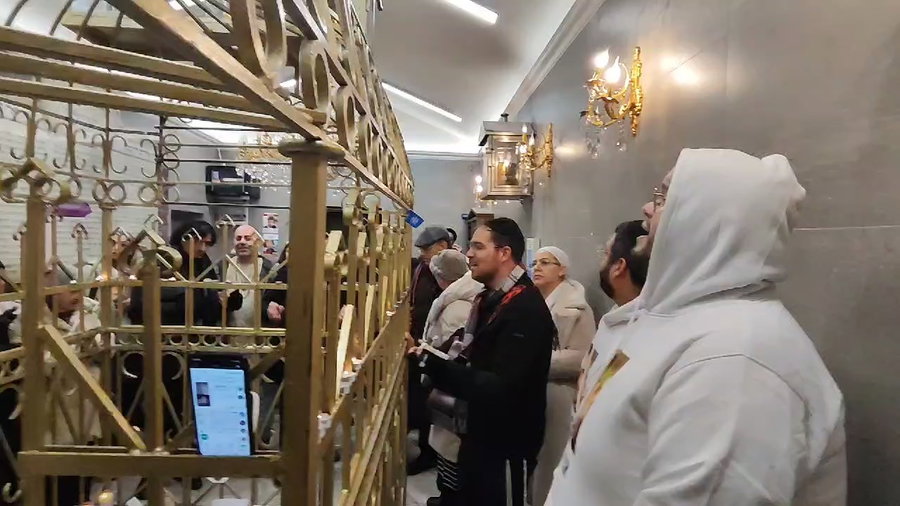 המוזיקאי הרב איצי אקרמן, בשירי רגש עם בני משפחות החטופים בשבי חמאס - בקבר המהרש"ל בפולין.