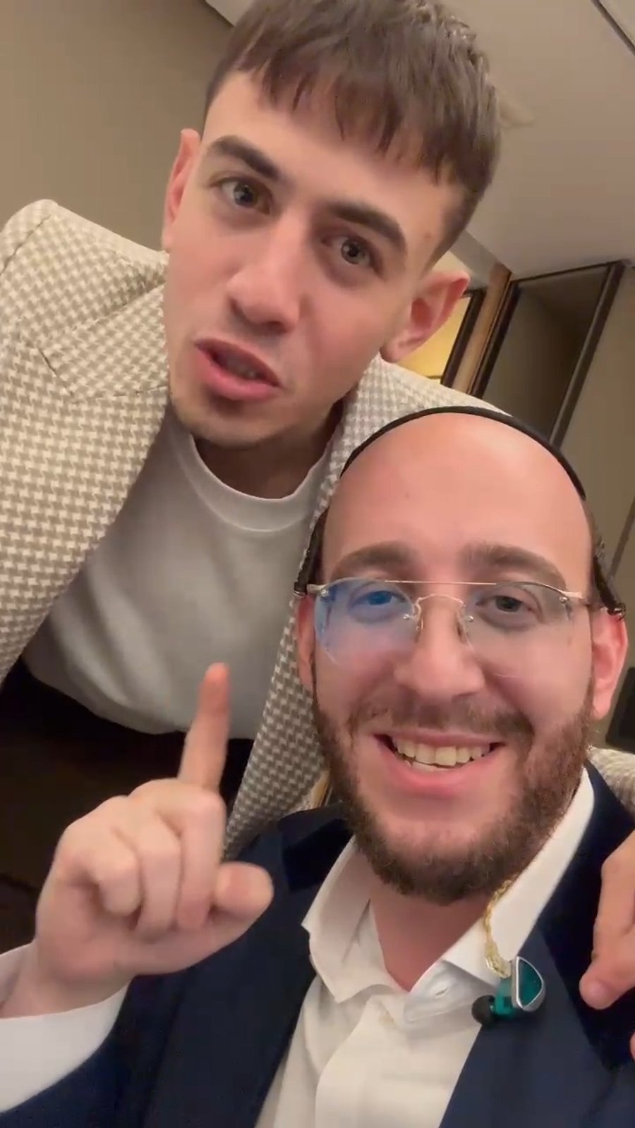 מאחורי הקלעים בחדר הזמרים, ששון שאולוב ופיני איינהורן נפגשו באקראי והתבדחו באמצעות שירה בהברה חסידית מקרטעת.