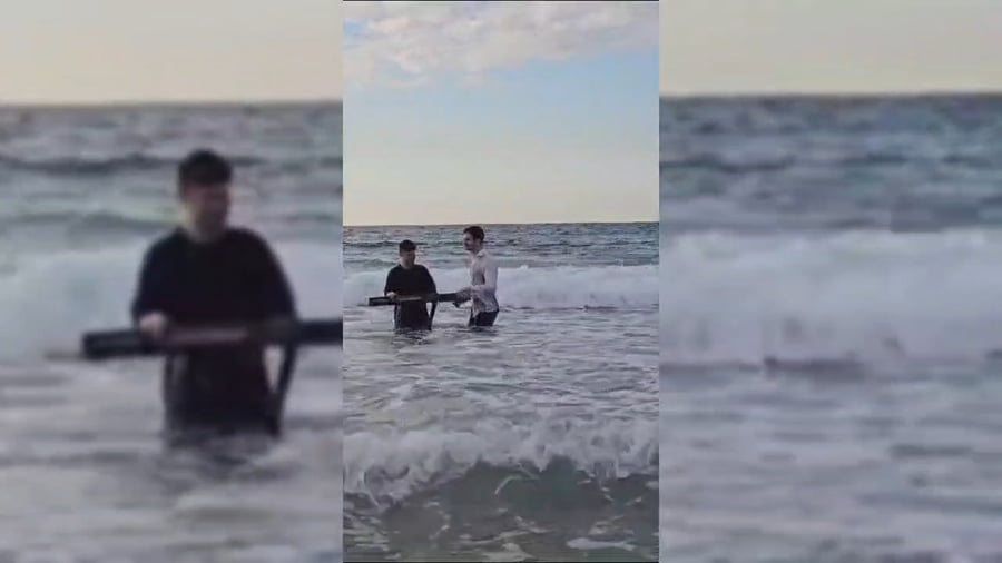 כזה עוד לא ראיתם! המוזיקאים שרולי ברונכר ומנדי טווערסקי בצילומים לקליפ חדש - עם קלידים בתוך הים.