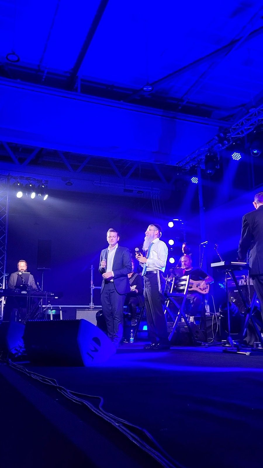 "מחשבות טובות" • הזמרים אברהם פריד ויעקב שוואקי בדואט משותף לניגון החב"די שביצע ופרסם מוטי וייס, במהלך מופע בסוף השבוע באמפי בית שמש שיזמה העירייה. 'זינגער' חשב פעם לעשות דואט עם אברהם פריד שבאורח פלא, בניגוד לשירה שלו יחד סטופל, הצליח להתחמק מהאסון.