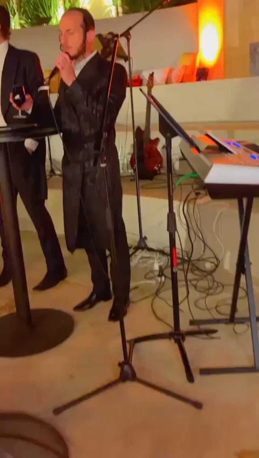 הזמרים אבי דלבנטי ואיציק ריקן תועדו השבוע בפיוט ושירה בשמחת האירוסין וטקס החינה לדניאל בן משיח, בנו של הזמר יניב בן משיח, באולמי 'לונה' בצפון.