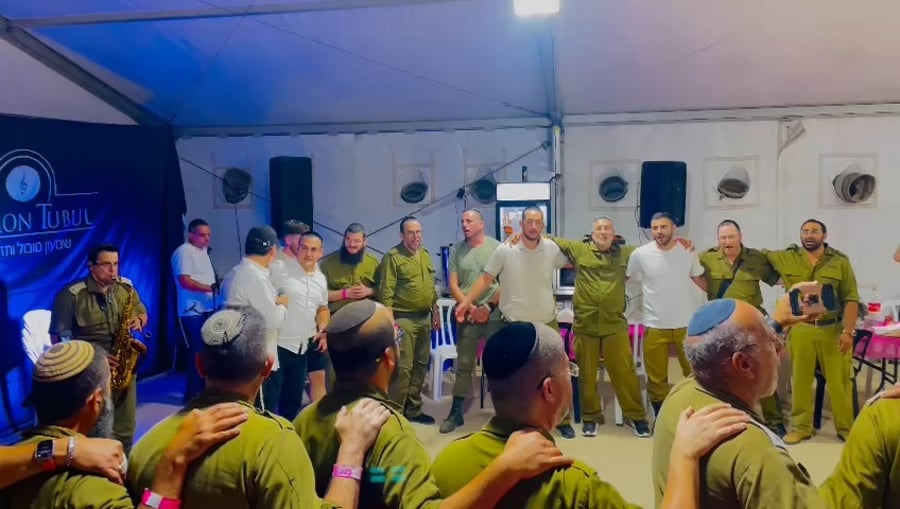 הקלידן שמואל יפת ואיש החסד מאיר בלוך יו"ר 'הכל מהלב' תועדו משמחים את חיילי צה"ל בשירה ואוכל יהודי לכבוד שבת קודש.