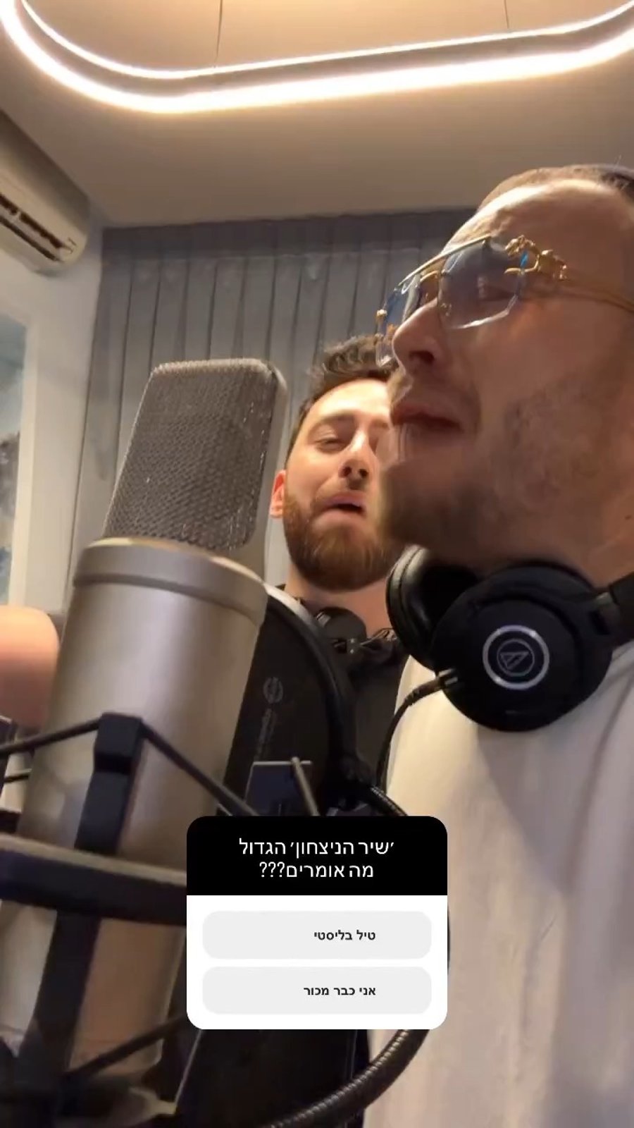 מאחורי הקלעים באולפן: הזמר והיוצר שוקי סלומון בהקלטות לשיר חדש באווירת המלחמה - "שיר הניצחון" יחד עם המוזיקאים דייויד טויב ושמוליק ברגר.