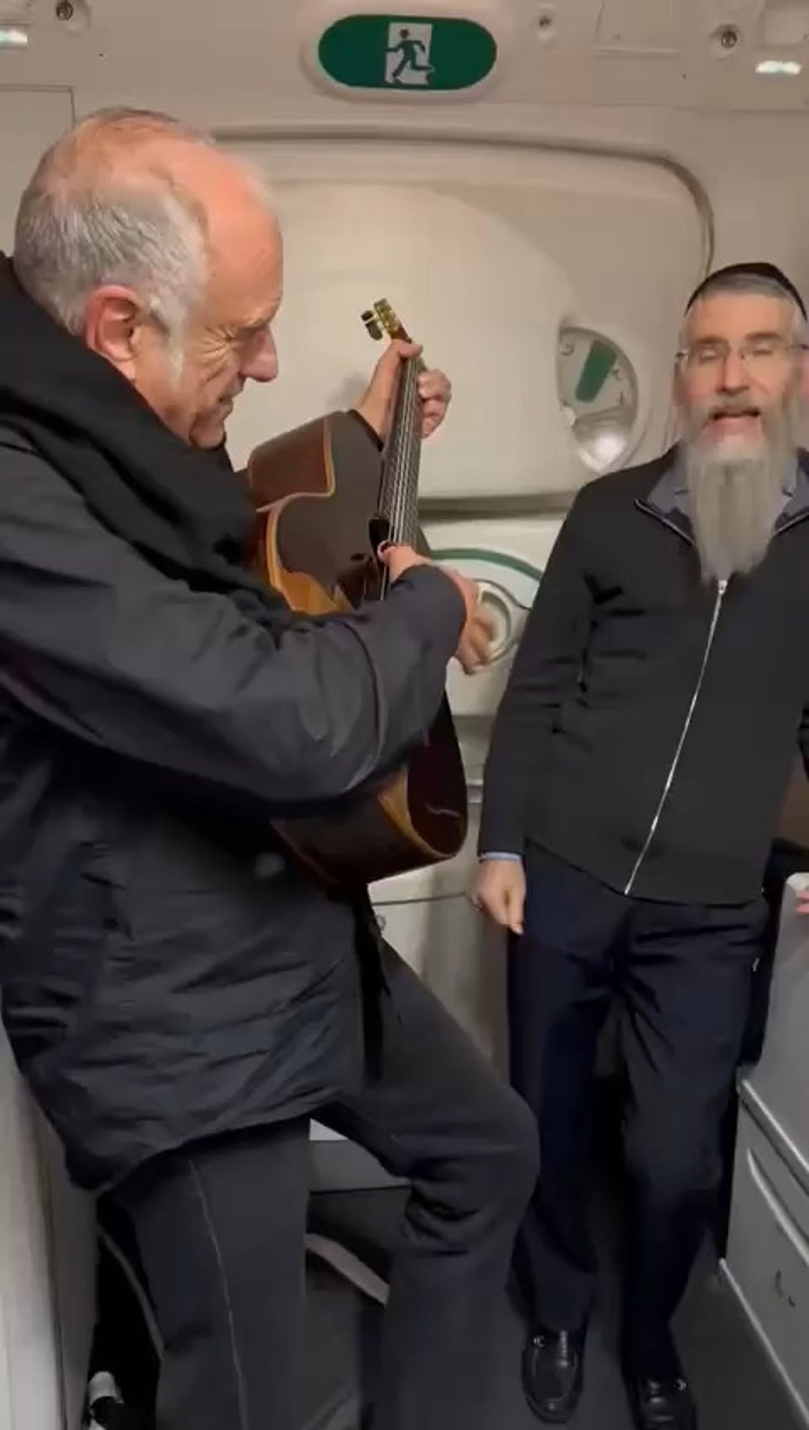 פריד לא בזבז את הזמן וכבר בטיסה, העלה את מורל הנוסעים כשהוא חובר לזמר והמוזיקאי הישראלי הנודע, דייויד ברוזה לשירת "כל העולם כולו".