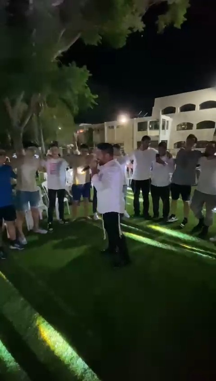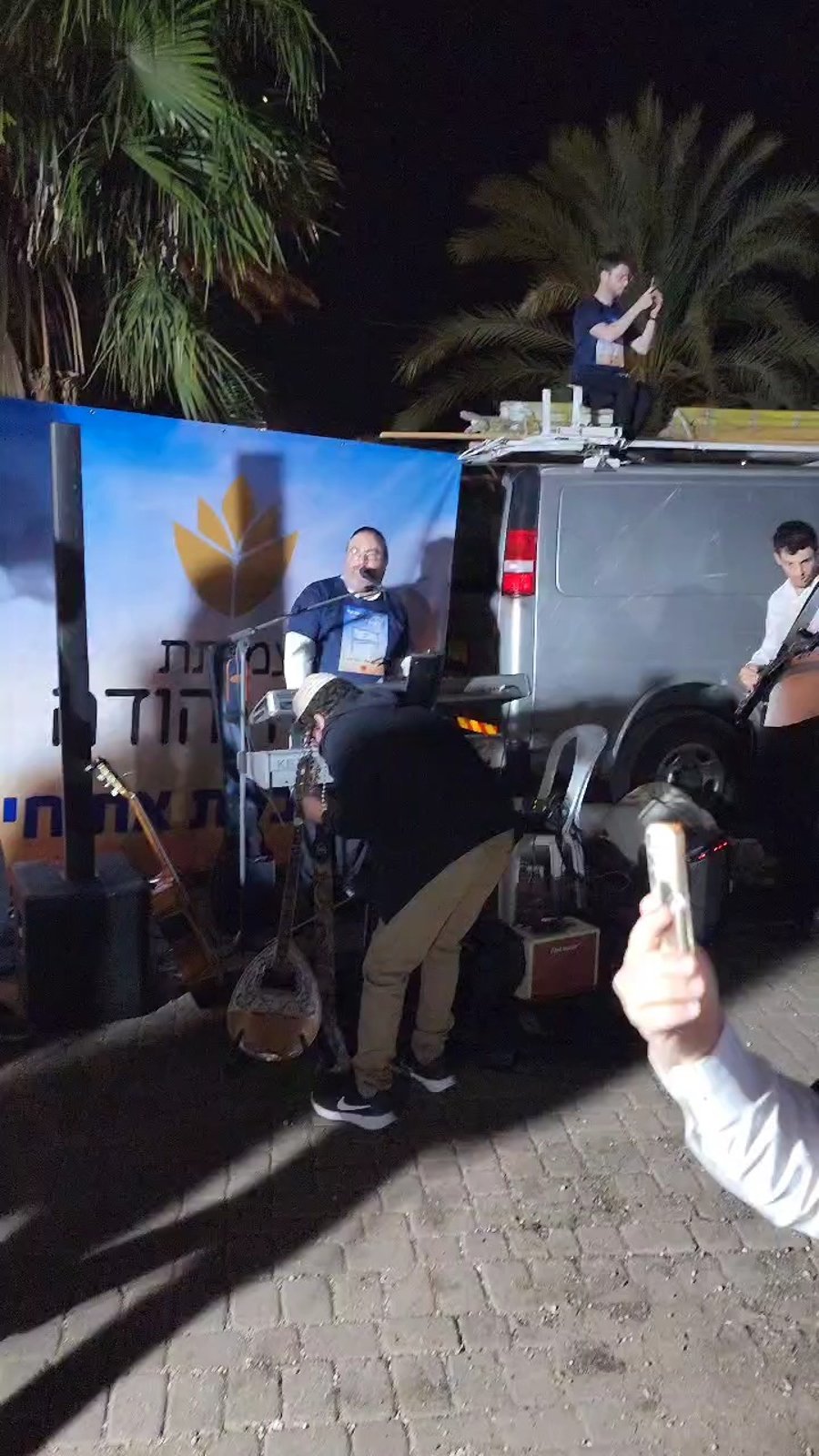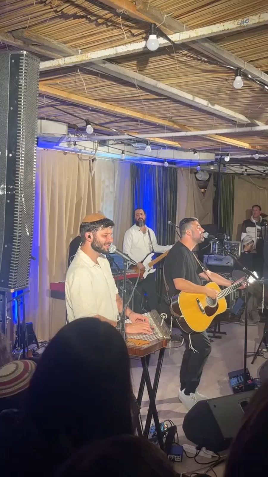 "ואנקמה נקם אחת משתי עיני מפלסטין" • הזמר איציק אורלב והקלידן יענקי אזולאי תועדו משמחים משפחות מהדרום והצפון שבאו להתארח במרכז בעקבות המלחמה.