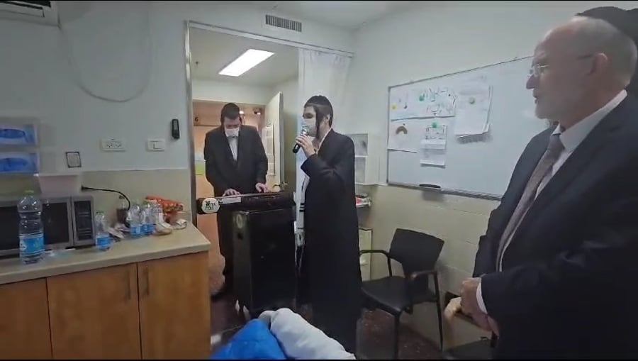 הזמר החסידי האהוב מוטי שטיינמץ, תועד משמח בשירי רגש את פצועי המלחמה המאושפזים בבית החולים 'תל השומר', מהצד נראים חבר מועצת הרבנות הראשית לישראל ורבה של צפת הגאון הרב שמואל אליהו והרב אלי ברונר מבכירי 'עזר מציון'.