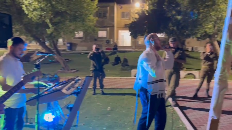 "געוואלדיג" • הזמר החסידי ליפא שמלצר שהגיע במיוחד מארצות הברית לשמח את חיילי צה״ל - מקפיץ בשירה בבסיס גולני יחד עם מתנדבי הכנסת אורחים רשב"י.