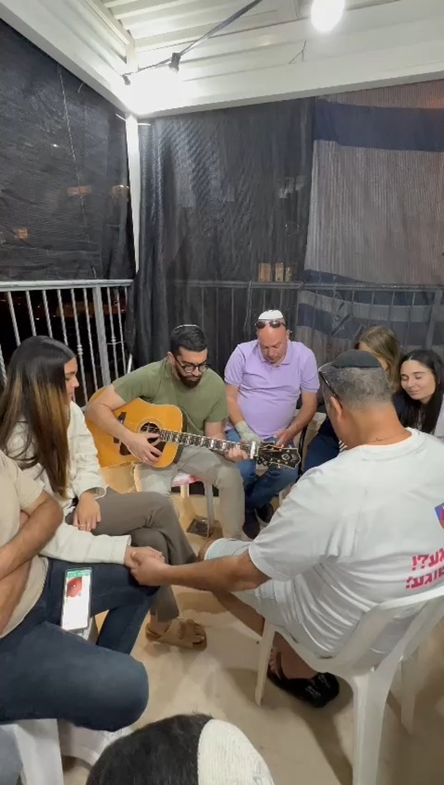 "אין דבר רע יורד מן השמיים" • המוזיקאים יעקב שוואקי, שמעון לוי ונחמן זוננשיין, תועדה בשירי רגש עם בני משפחתה של נועה ארגמני שנחטפה לעזה ונמצאת בשבי החמאס