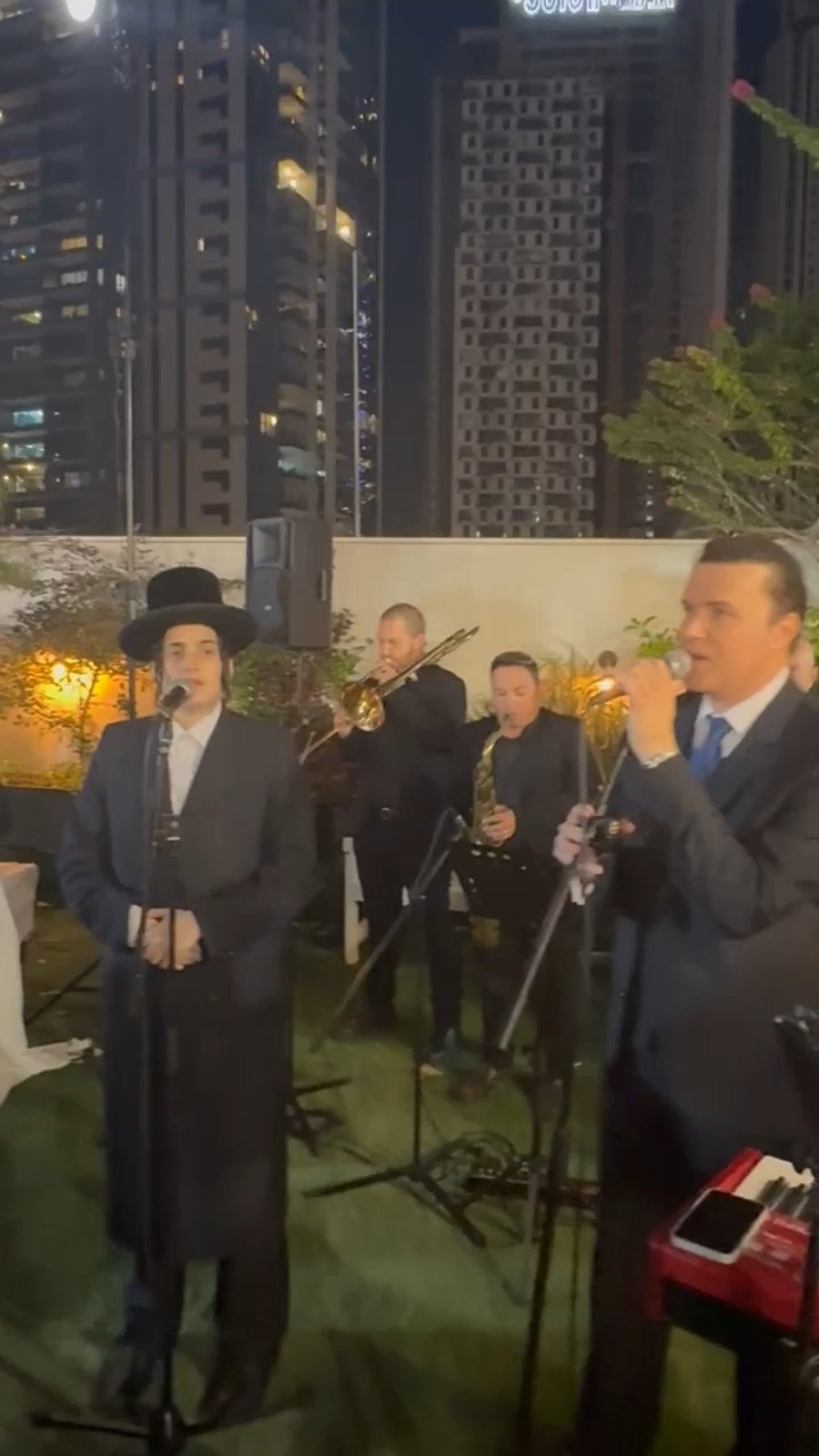 המוזיקאים אוהד מושקוביץ, מוטי שטיינמץ ואהרל'ה נחשוני בביצוע מיוחד לשיר ׳נפשי׳ בחופה יוקרתית באולמי ׳דימול פלטינום׳, לאחר שהחופה הופסקה בשל אזעקות בגוש דן.