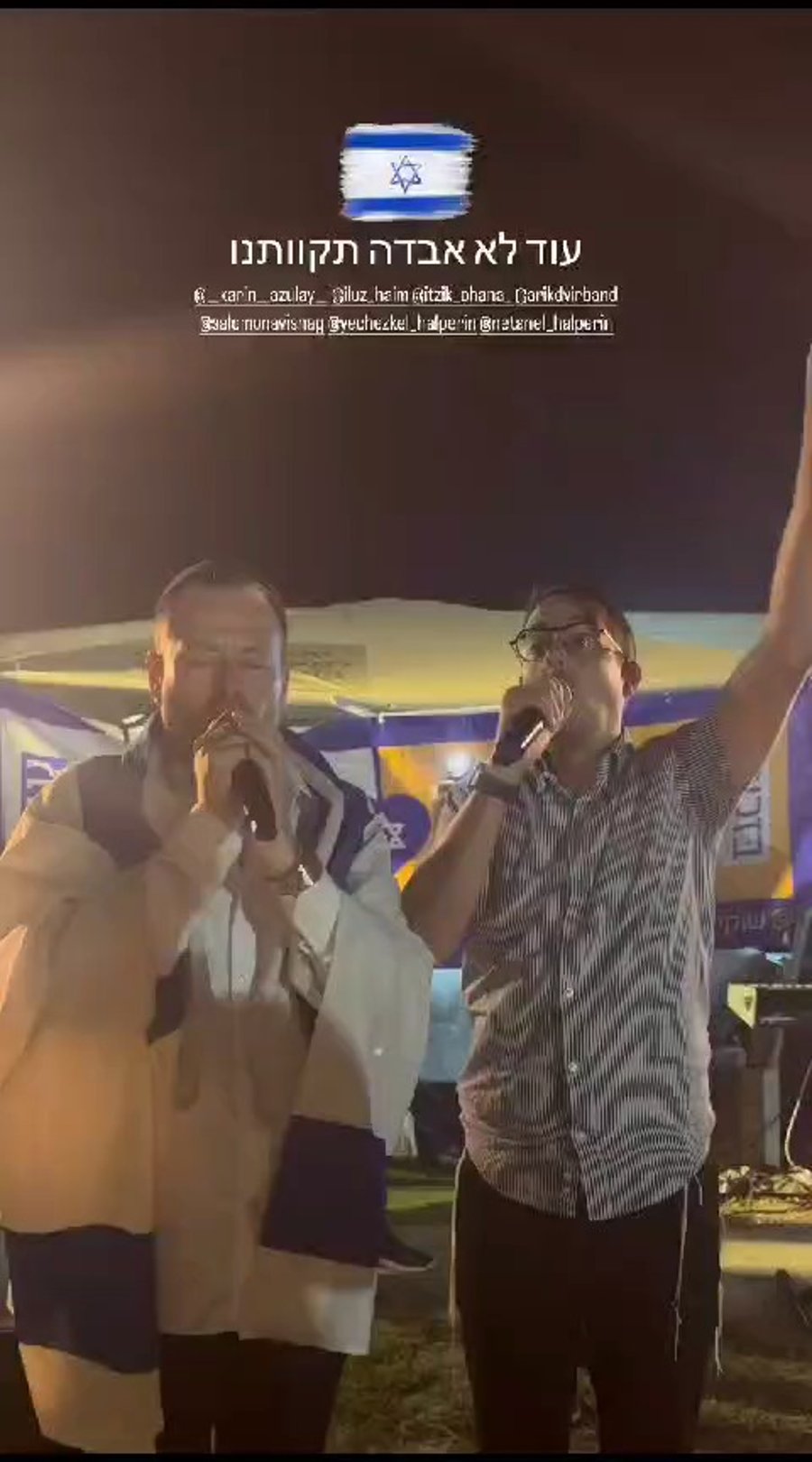 "עוד לא אבדה תקוותנו" • המוזיקאים שוקי סלומון ואריק דביר בשירת "התקווה" עם חיילי צה"ל בבסיס חיל האוויר בנבטים