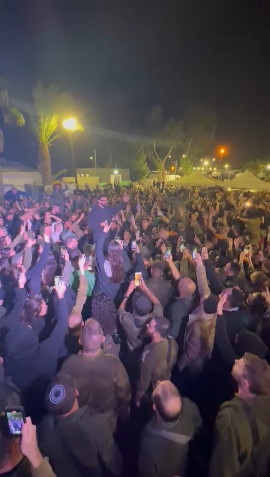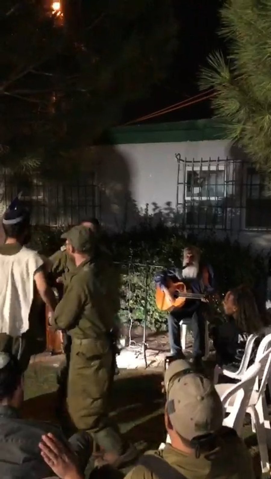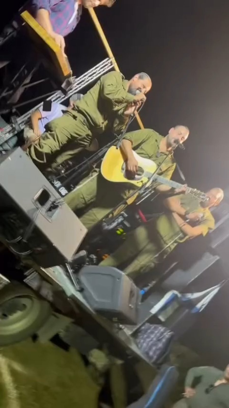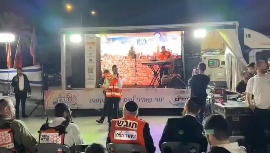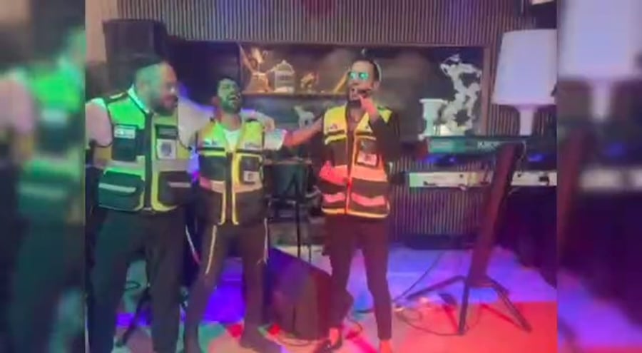 המוזיקאים חיים שלמה מאייעס, נותי ליברמן, יונתן שינפלד, חיים ציפל ואלי פרוכטר, בשירה מרגשת בערב חוסן למתנדבי 'איחוד הצלה' בשדה יואב.
