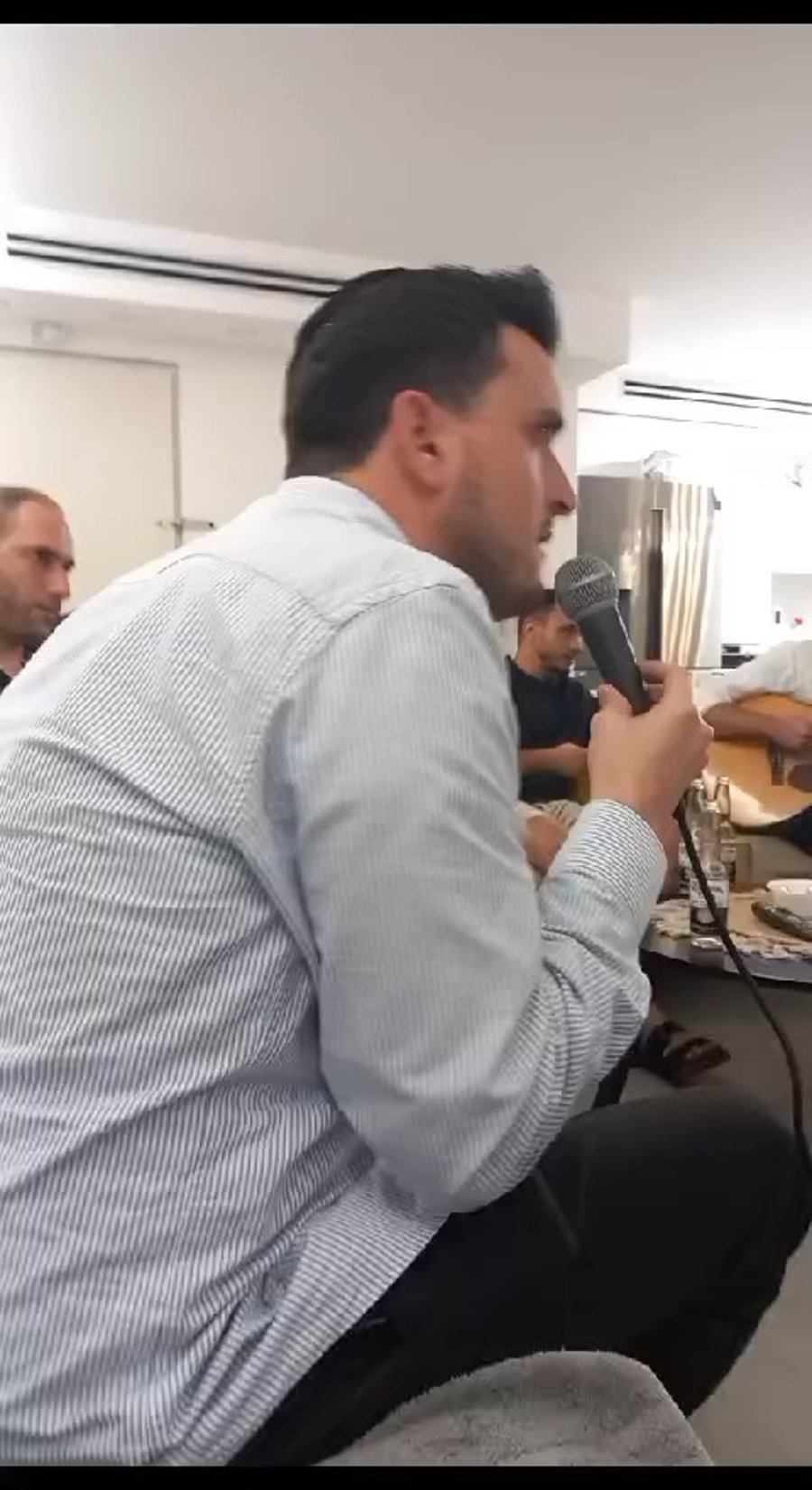 המוזיקאים קובי ברומר ויענקי סלומון בשירי רגש וחיזוק אצל בני משפחתו של אוריאל ברוך שחטוף בעזה.