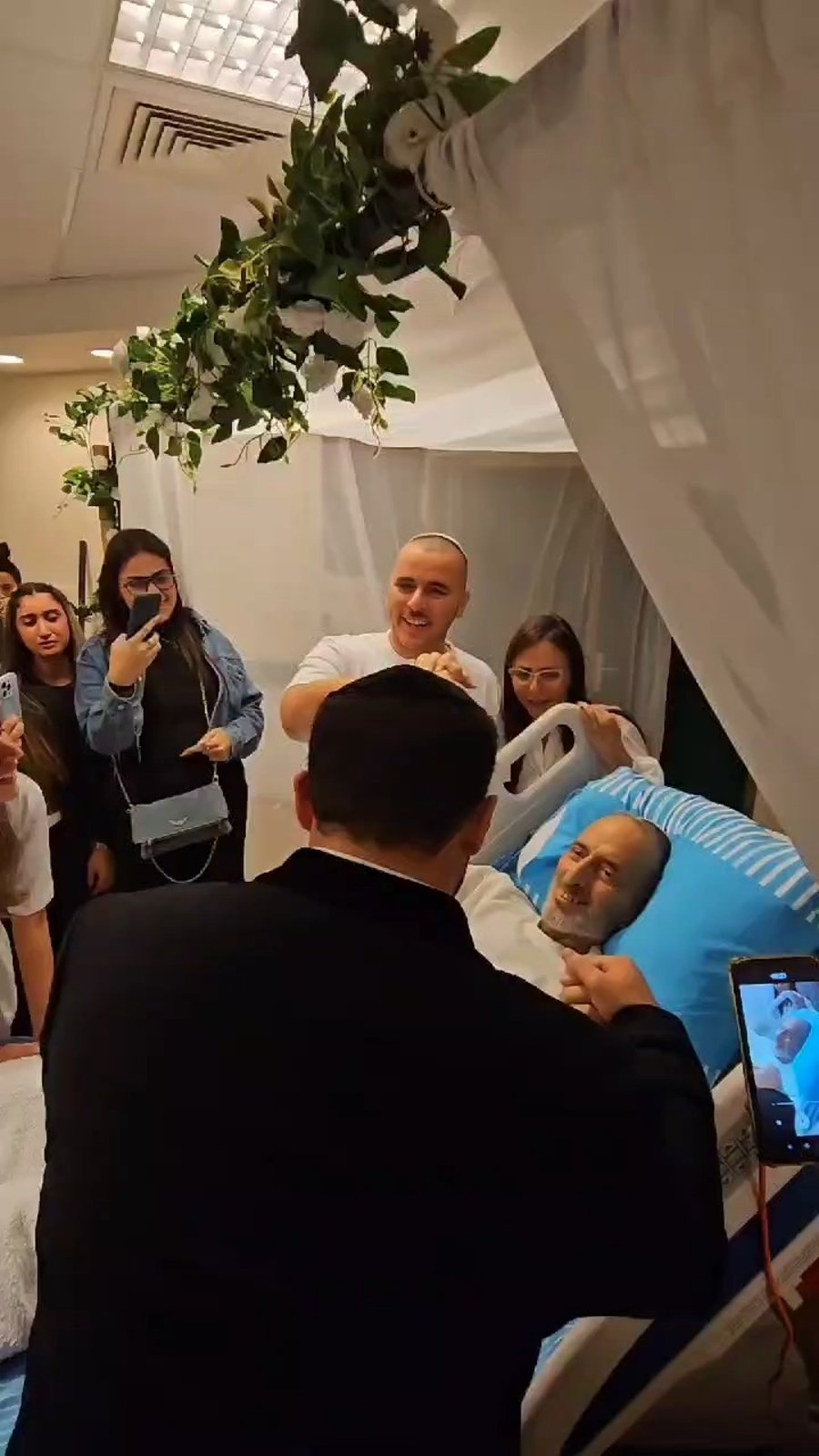 שמחה מהולה בעצב: צפו בתיעוד מרגש של הזמר איציק אורלב שהופיע בסוף השבוע שעבר בחופה שנערכה לבני זוג בבית חולים 'תל השומר' בעקבות מצבו הרפואי הקשה של האבא - שנפטר ביום שני השבוע, למרבה הצער. על ההפקה והיוזמה הופקדו: צוות בית החולים 'תל השומר' ונעה פקטר מנהלת קשרי הקהילה בבית החולים.