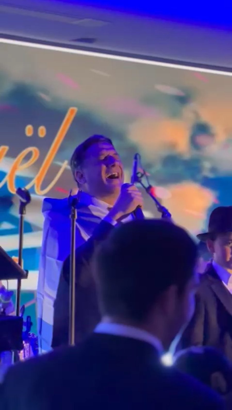 כשהוא עטוף בדגל ישראל, הזמר חיים ישראל תועד מבצע את "שמע ישראל" בשירה מרגשת בבר מצווה יוקרתית בצרפת.