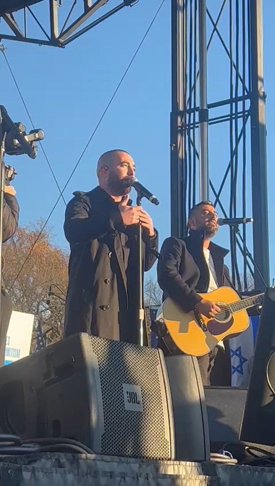 "הַלֵּב שֶׁלִּי נִקְרַע לִשְׁנַיִם" • הזמרים עומר אדם וישי ריבו בשירה מרגשת עם להיט הענק של ריבו בעצרת הענק למען ישראל בוושינגטון בהשתתפות מאות אלפים.