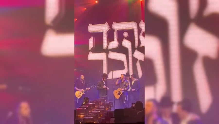 המוזיקאים מרדכי שפירא ויואלי דיקמן בשירה מרגשת: "אחינו כל בית ישראל" של הזמר דדי גראוכר ז"ל - יחד עם בנו שי גראוכר, באירוע למפוני הדרום במלון 'לאונרדו' בירושלים.