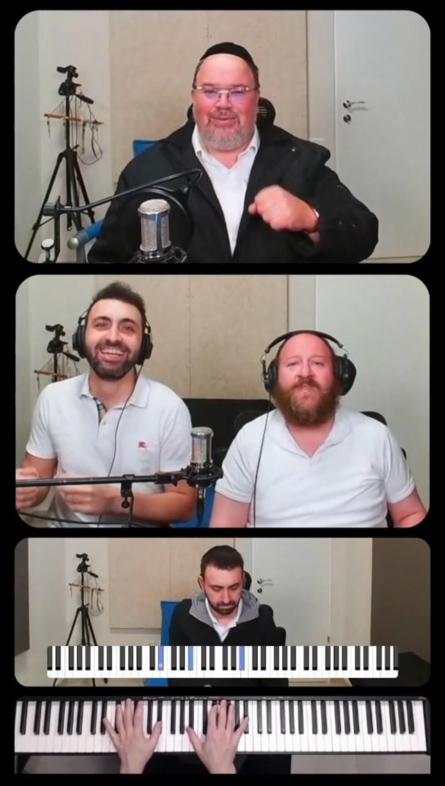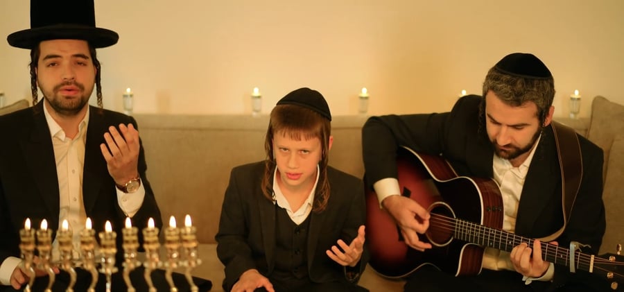 מאחורי הקלעים: הזמר והקלידן מוטי כהן, ילד הפלא יאיר כהן והגיטריסט שרוליק קלצקין בצילומים לקליפ לכבוד חנוכה.
