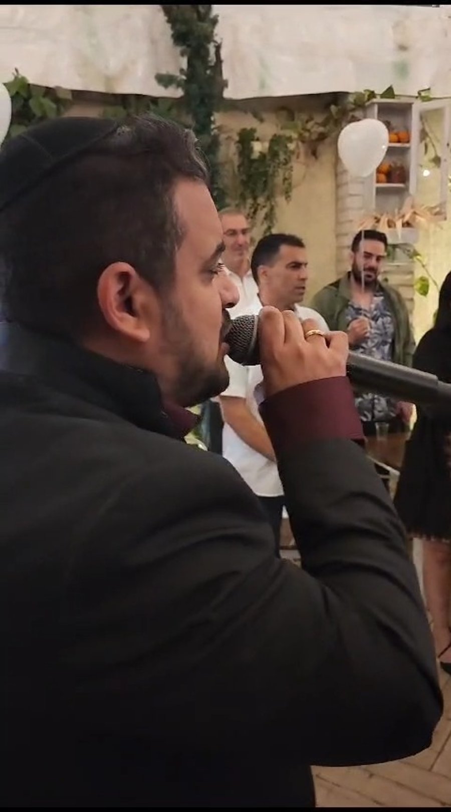 הזמר והפייטן יובל טייב בפיוט ושירה באירוע זבד הבת לבתו של יחצ"ן המוזיקה אבירם ג'רפי.