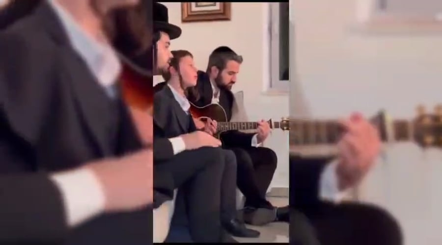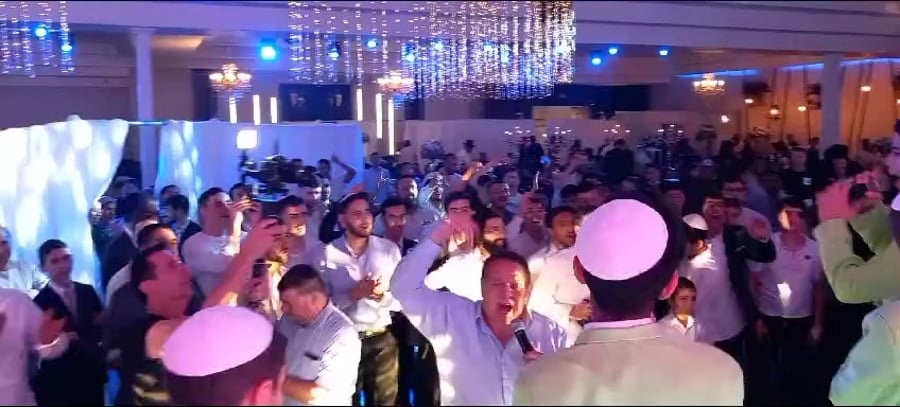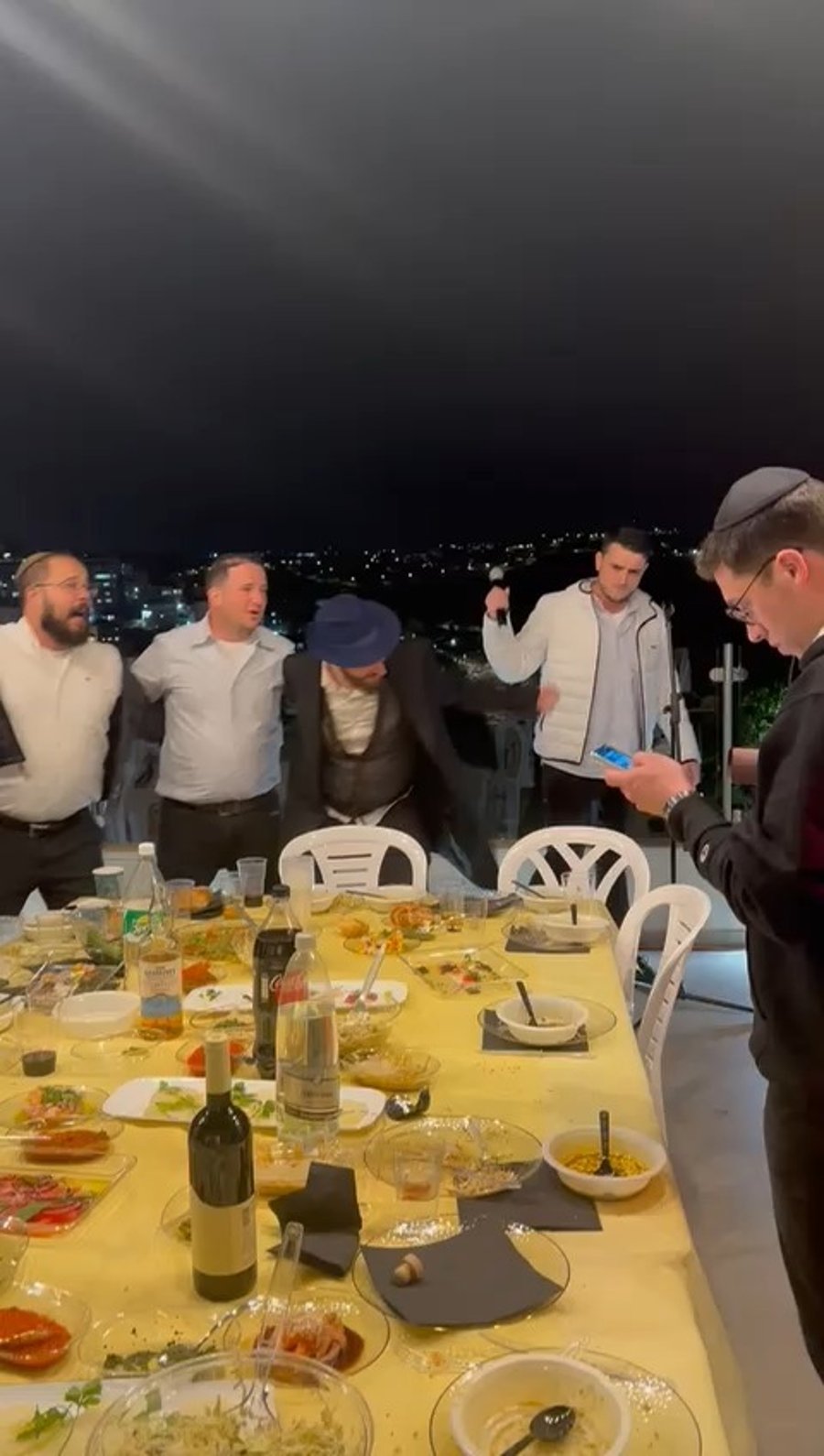 הזמר אלי הרצליך והמוזיקאי אהרל'ה נחשוני מרגשים בשירת: "מי שברך לחיילי צה"ל" במהלך חופה חרדית בקדמא.