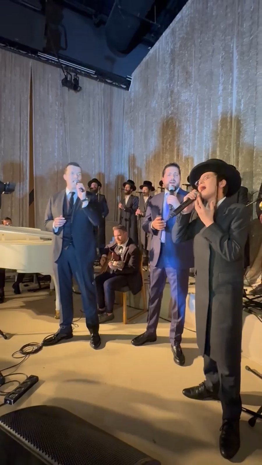 הזמרים אוהד מושקביץ, משה דוויק, בנצי קלצקין ומקהלת 'מלכות', בשירת 'מי שברך' לחיילי צה"ל, בחתונת בנם של יוסי ואתי אפינגר - הבחור אליאב עם הבחורה רחל עמאר.
