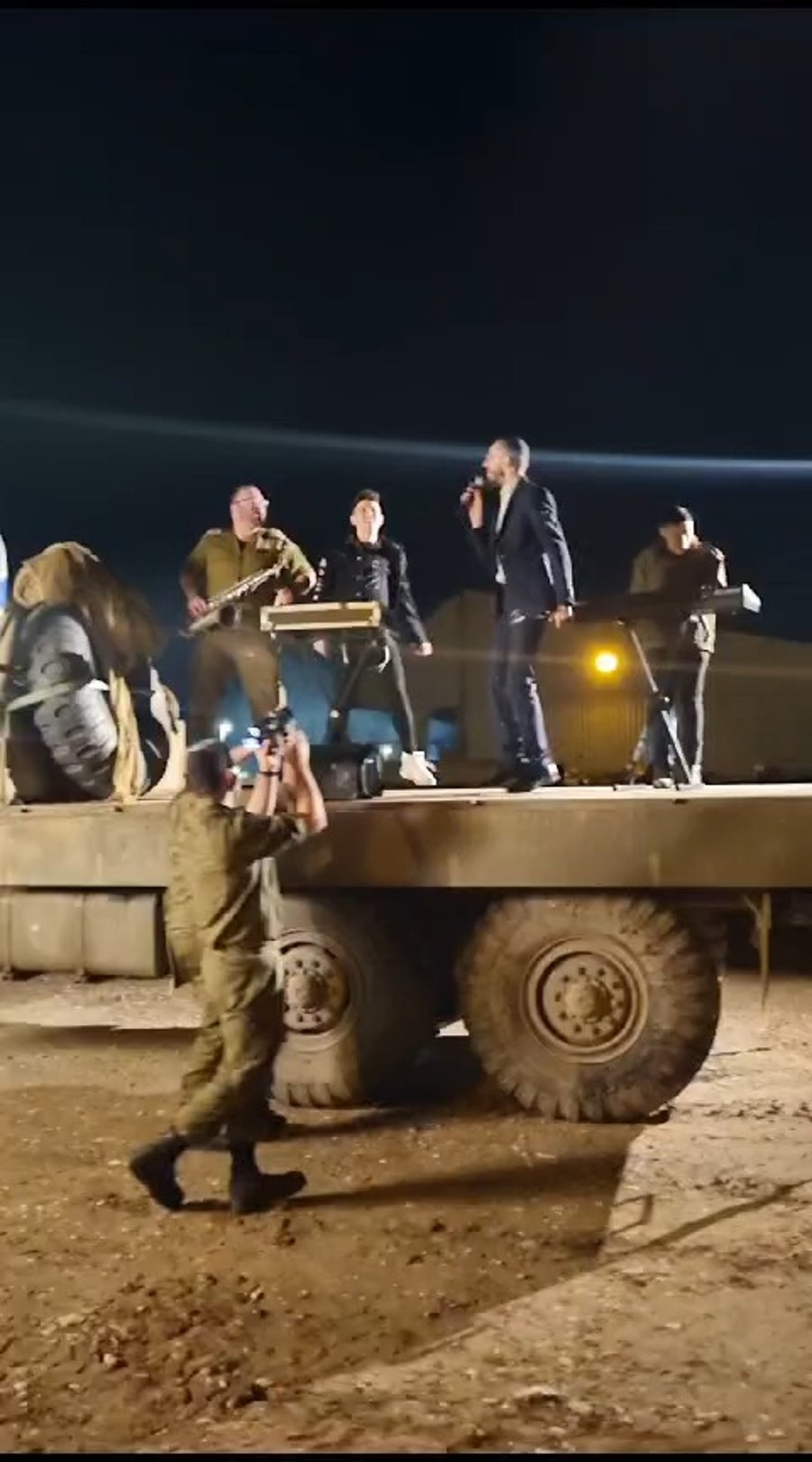 "הִנֵּה לֹא יָנוּם וְלֹא יִישָׁן שׁוֹמֵר יִשְׂרָאֵל" • הזמר החסידי שלומי גרטנר והזמר מאור אדרי בדואט מרגש, במהלך מופע לחיילים במתחם ההתרעננות של ארגון 'ביחד ננצח' ועמותת 'כלל ישראל' בעיר אופקים.