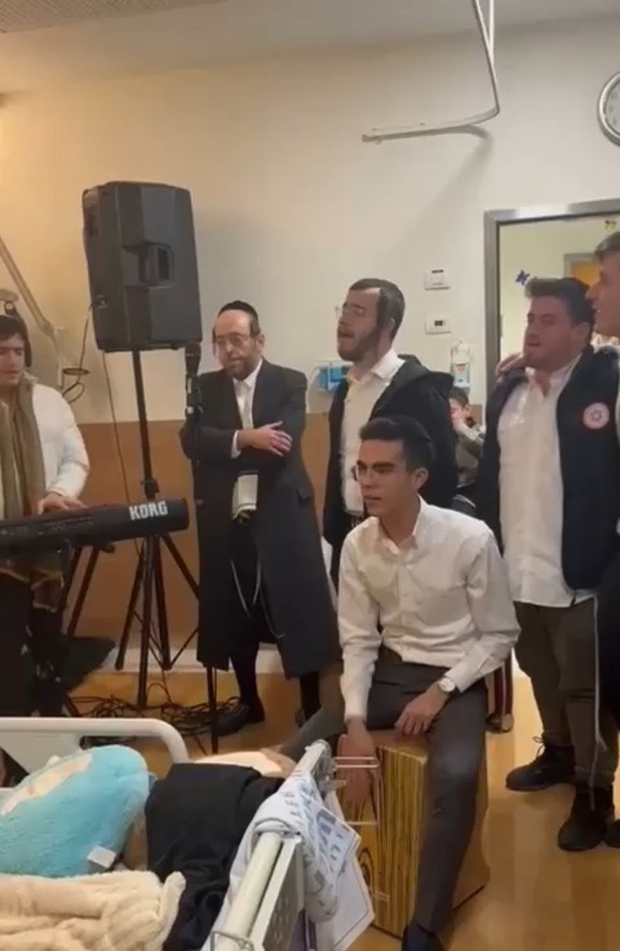 לאחר מכן, באותה חתונה מלאת זמרים וצלילים, הזמר מוטי שטיינמץ תועד בשירה מרגשת: "הַמָּקוֹם יְרַחֵם עֲלֵיהֶם וְיוֹצִיאֵם מִצָּרָה לִרְ֒וָחָה וּמֵאֲפֵלָה לְאוֹרָה וּמִשִּׁעְבּוּד לִגְ֒אֻלָּה".