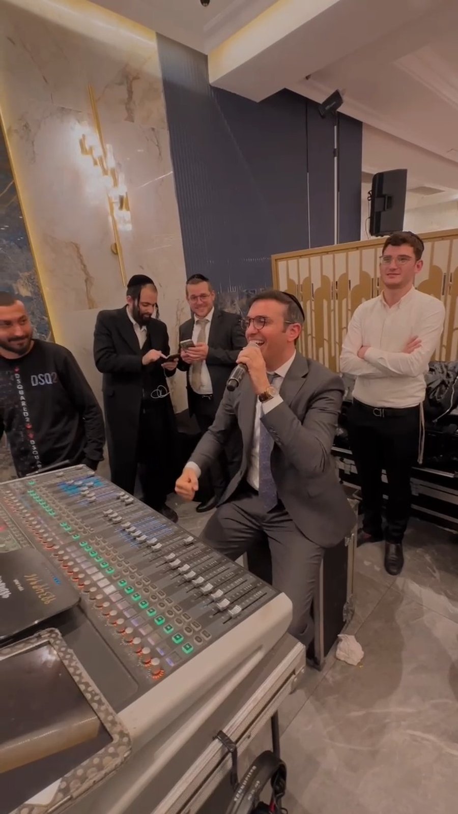 המוזיקאים שלום למר, שלומי גרטנר, שמילי אונגר, הערשי ויינברגר, עמירן ואריק דביר ומקהלת מלכות ותזמורת 'ליסטיג' מלונדון - בשירה מיוחדת בחתונה יוקרתית בלוס אנג'לס שבארצות הברית.