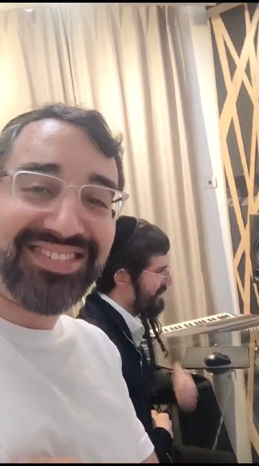 מאחורי הקלעים: הזמר החסידי שמחה פרידמן יחד עם המעבד שרולי ברונכר, בצילומים לקליפ חדש בשיתוף מקהלת הרבנות הצבאית.