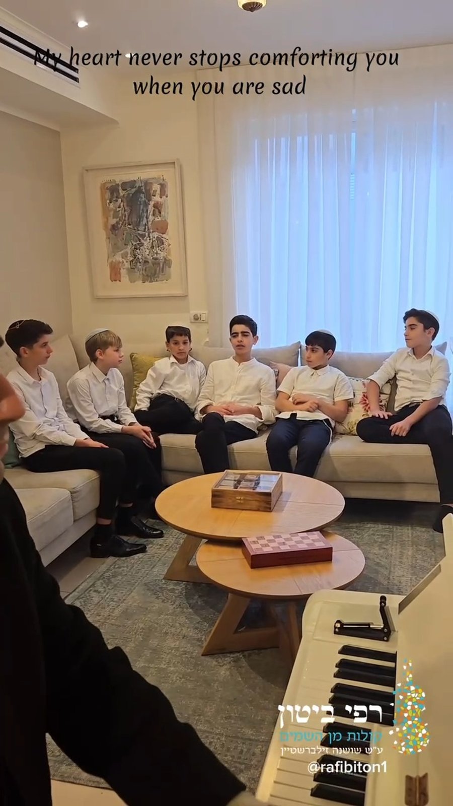 ילדי מקהלת 'קולות מן השמים' של המנצח והמעבד רפי ביטון, מספקים לנו הצצה מרהיבה אל החזרות לשיר "ימים טובים" בסלון של הביטונים.