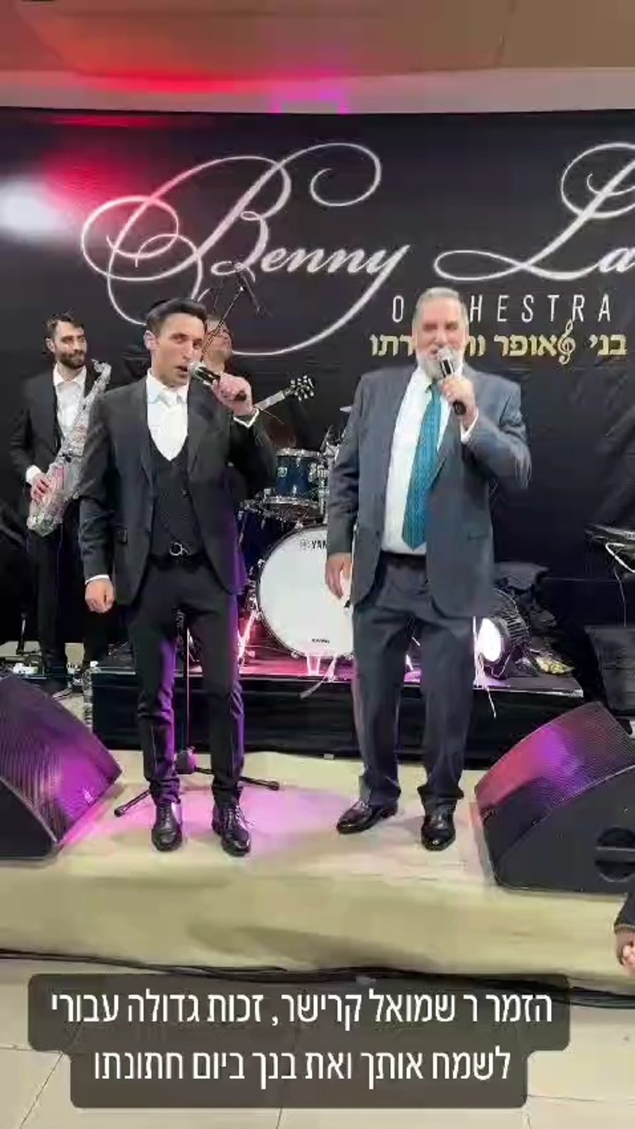 החזן והזמר שמואל קרישר בדואט משותף עם בנו שהתחתן השבוע, לצד הזמרים שהופקדו על המוזיקה: קובי ברומר ובני לאופר.
