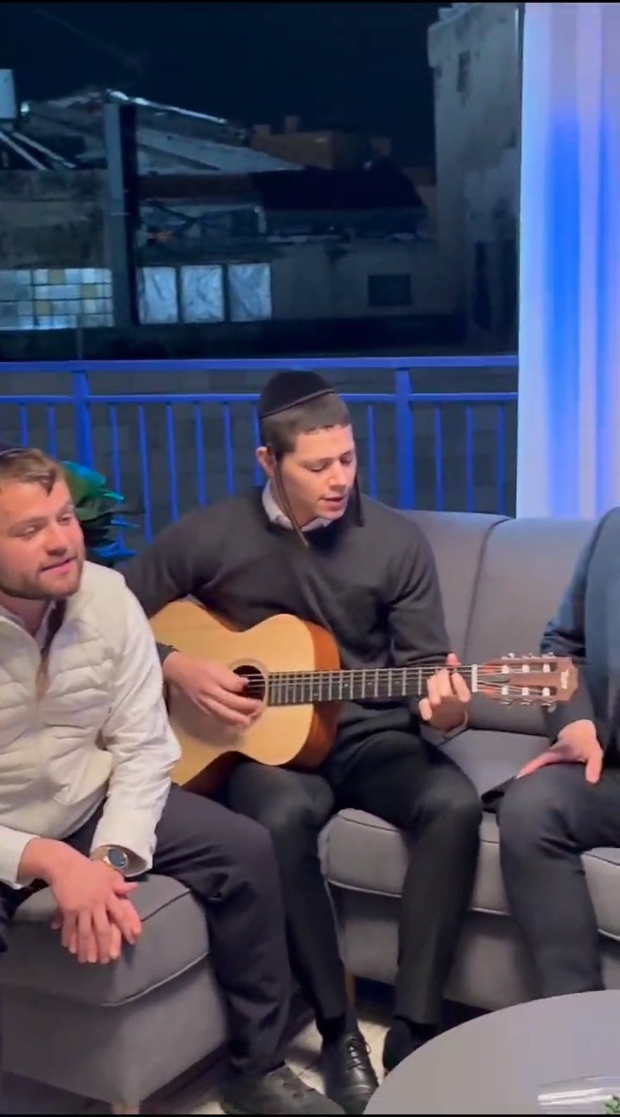 מאחורי הקלעים: המוזיקאי יואלי דיקמן וחברי מקהלת 'נגינה', בצילומים לקליפ שבת חסידי בבימויו של שרולי ברונכר.