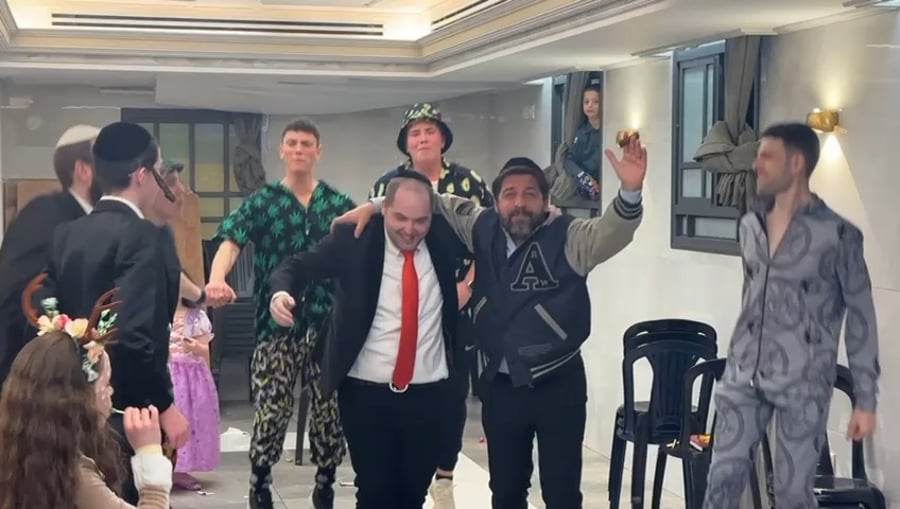 הזמר אהרל'ה סמט משמח במשתה הפורים היוקרתי בביתו של האסטרטג יוסי רוזנבוים.