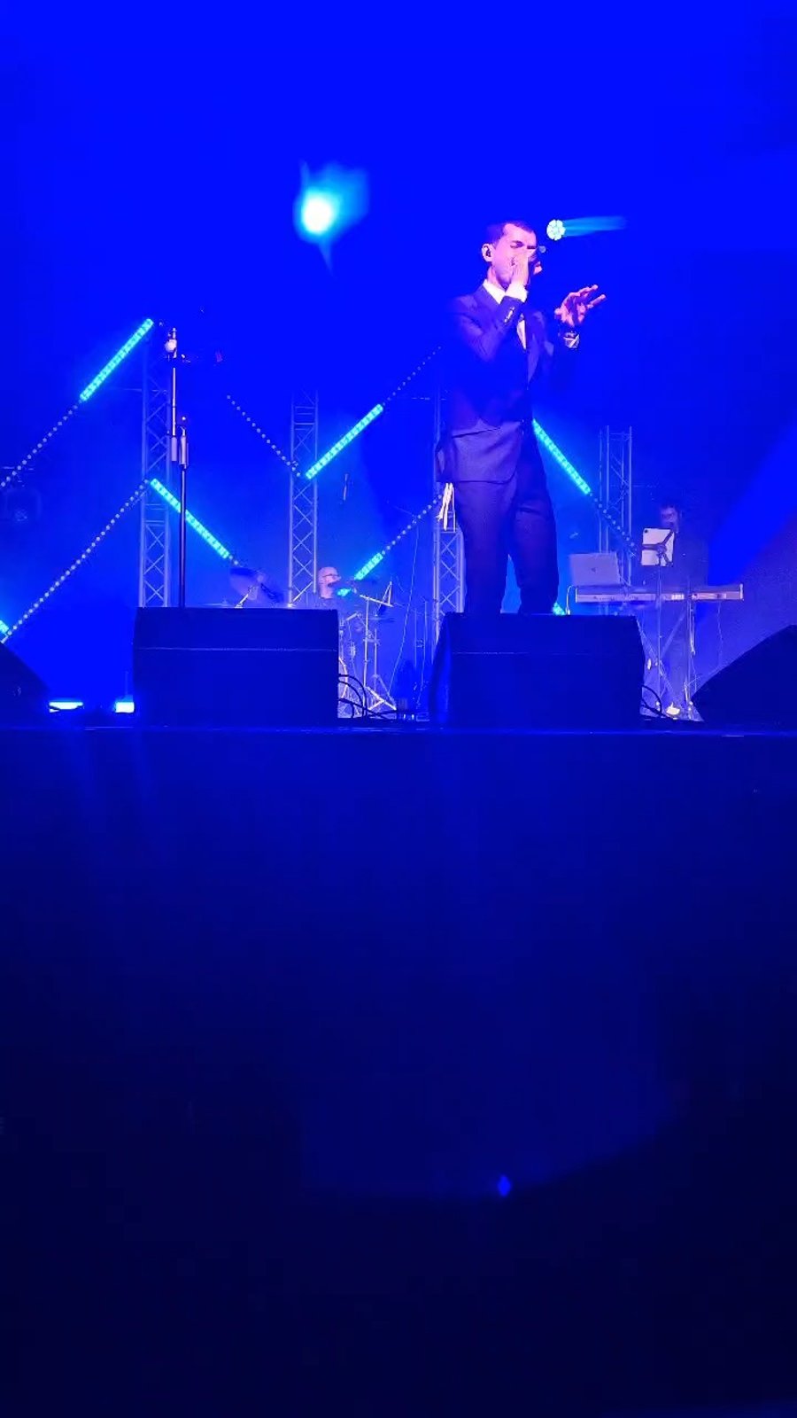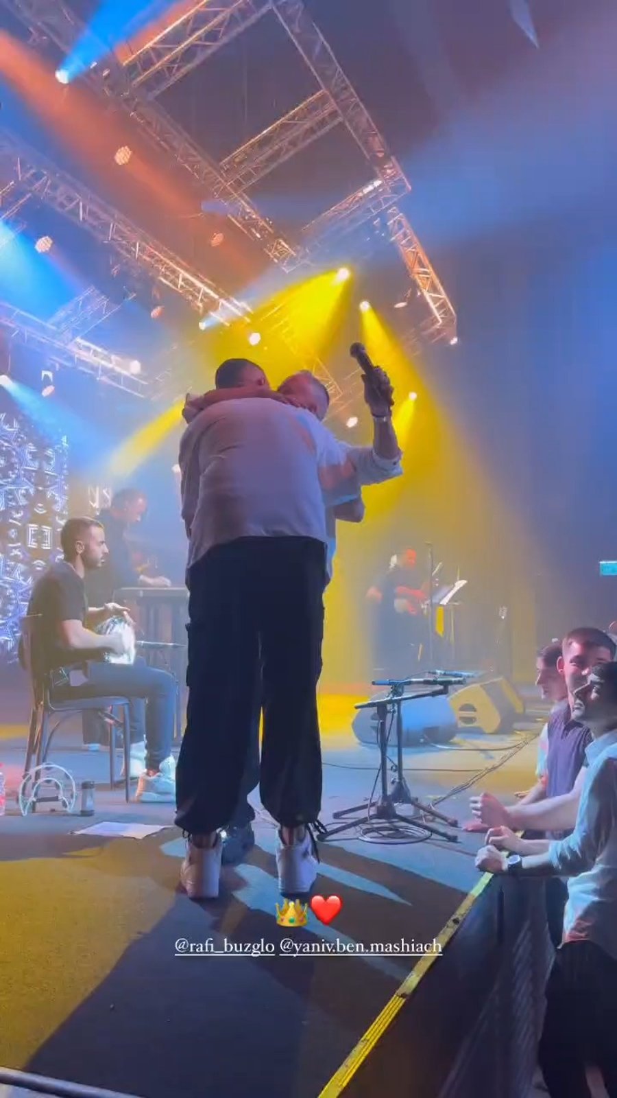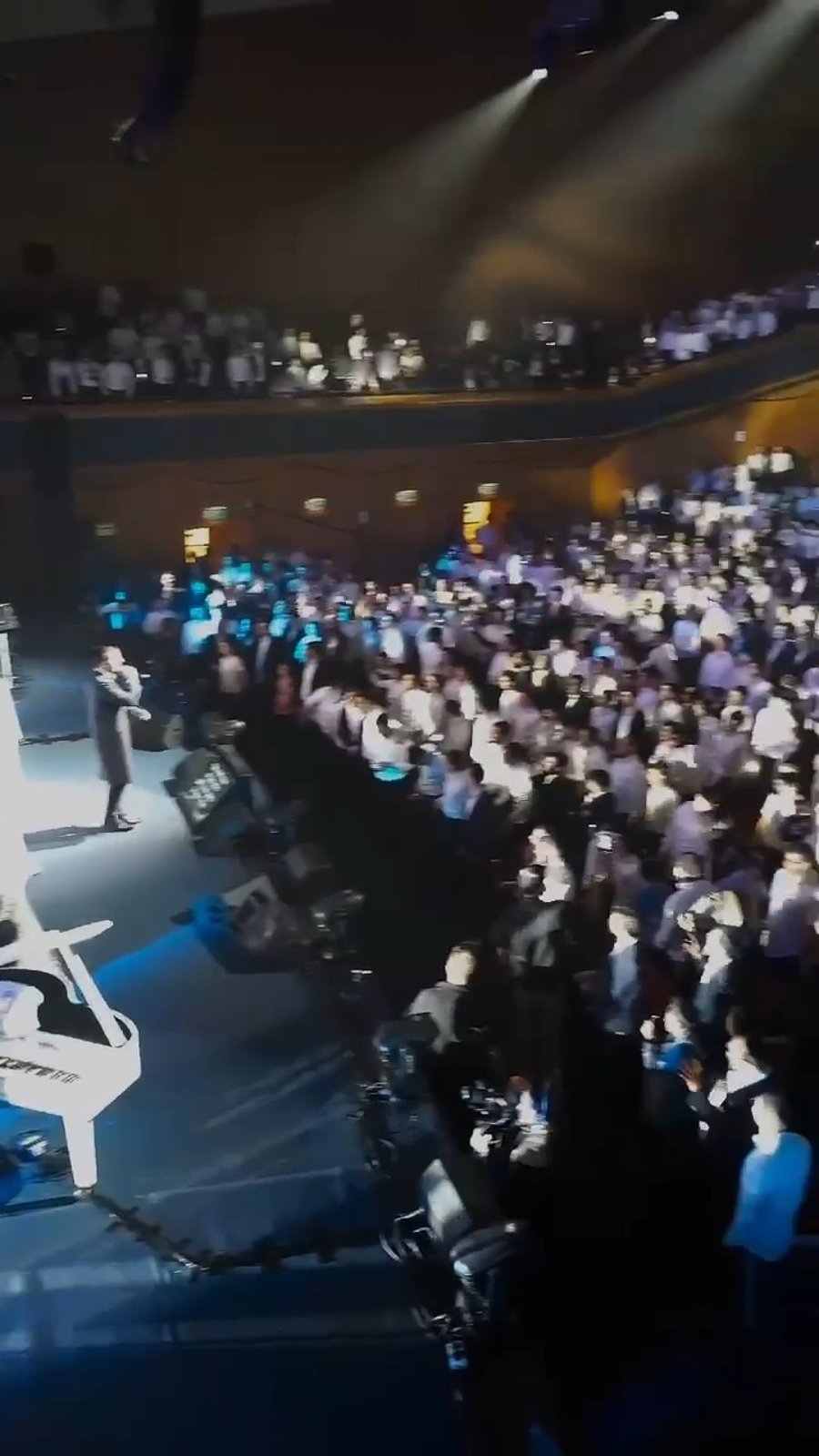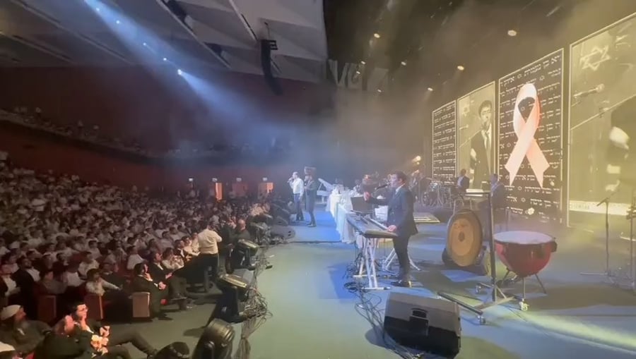 הזמרים האחים רולי ויואלי דיקמן בשירה מרגשת: "אַחֵינוּ כָּל בֵּית יִשְׂרָאֵל", במהלך מופע ב'בנייני האומה' בירושלים.
