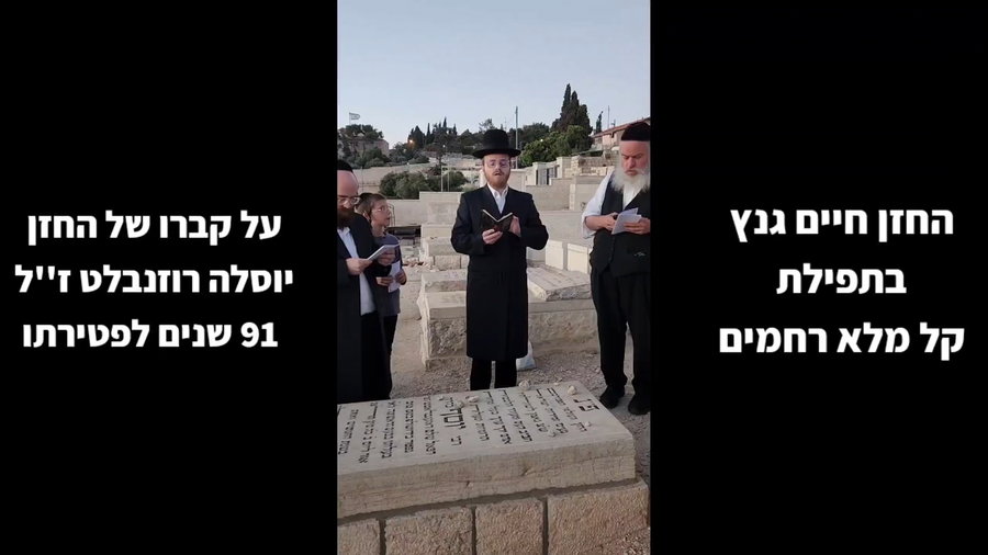 החזן חיים גנץ תועד השבוע בתפילת ''קל מלא רחמים'' על קברו של החזן יוסל'ה רוזנבלט ז''ל במלאת 91 שנים לפטירתו.