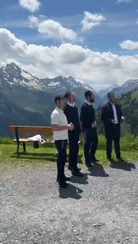 חברי מקהלת ‘נשמה’ בניצוחו של איציק פילמר יחד עם הזמר ברוך ויזל, בשירי שבת על רקע הרי האלפים בעיירת הנופש סן אנטון שבאוסטריה, לרגל מסע מיוחד של חסידות 'ספינקא'.