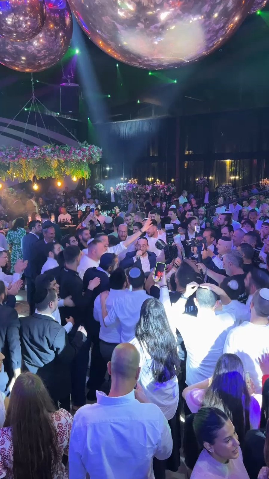 ולסיום ראינו את הזמר פיני איינהורן, מקפיץ את הקהל בשירת: "בַּר יוֹחָאי" בחתונה המדוברת.