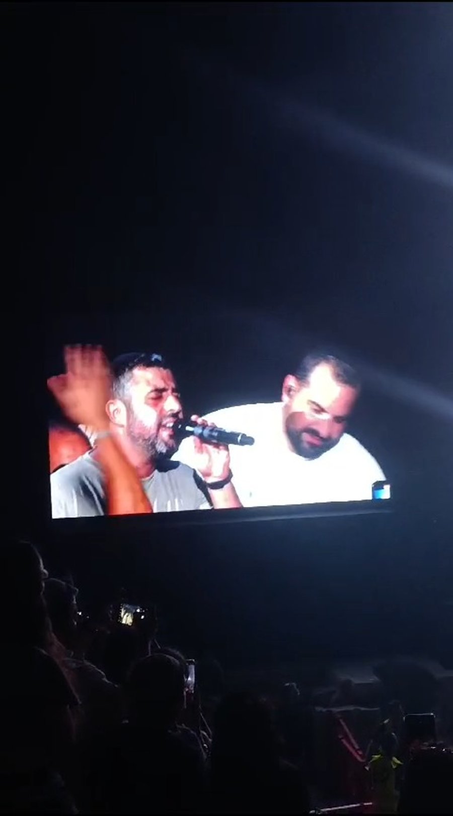 הזמרים אברהם פריד ועידן רייכל בדואט לשיר: "שבט אחים ואחיות", במהלך מופע ענק ב'בריכת הסולטן' בירושלים.