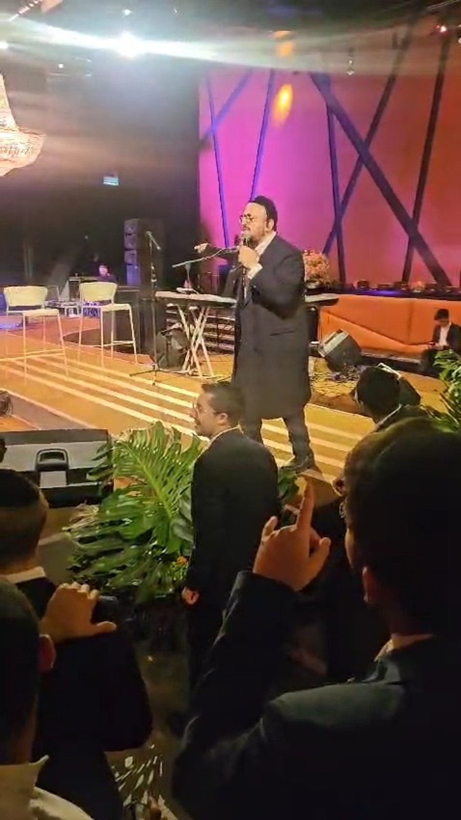 הזמר שמוליק קליין מקפיץ בשירה אלפי בחורי ישיבות, בגמר תכנית 'הקלידנים' של רדיו 'קול חי', בהיכל התרבות בבית שמש.