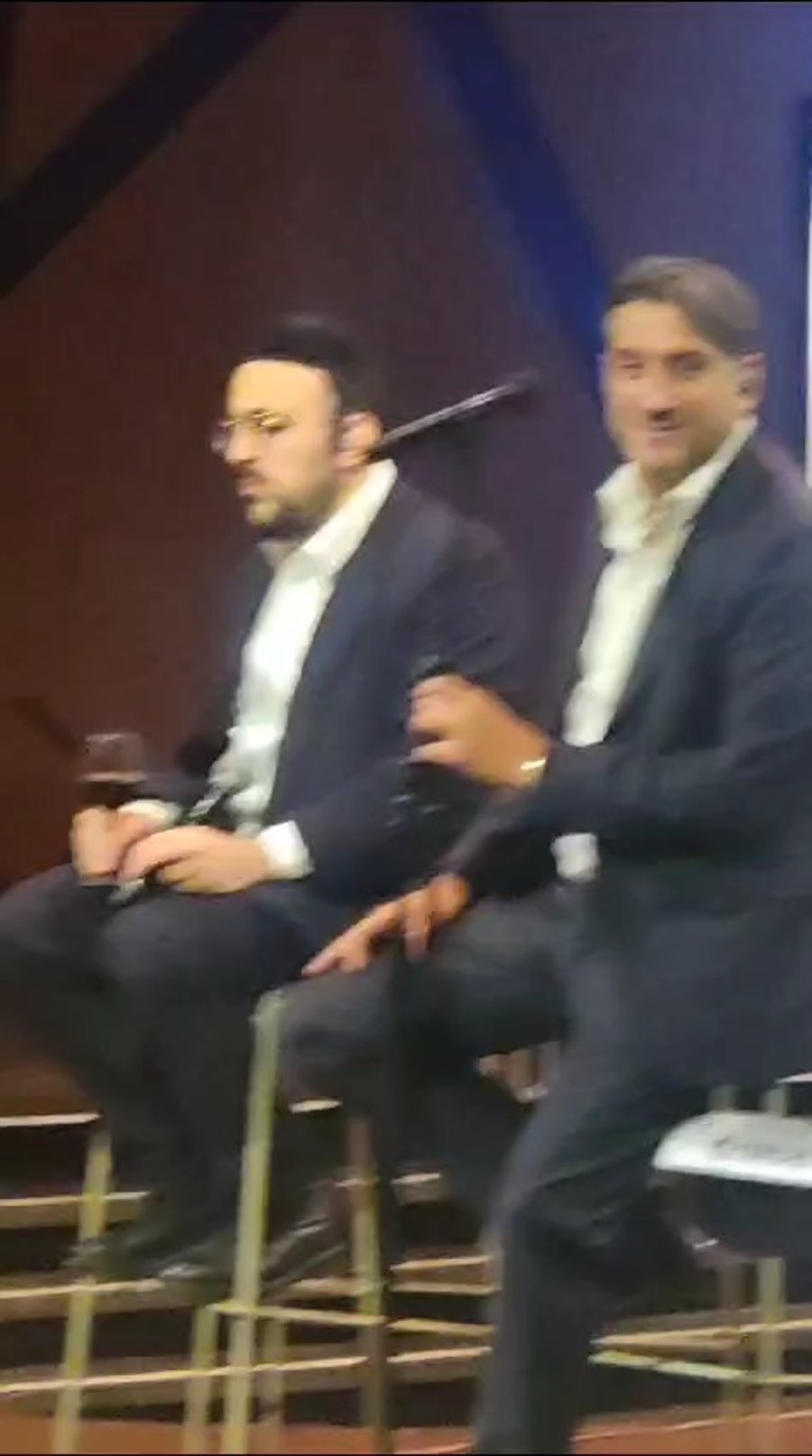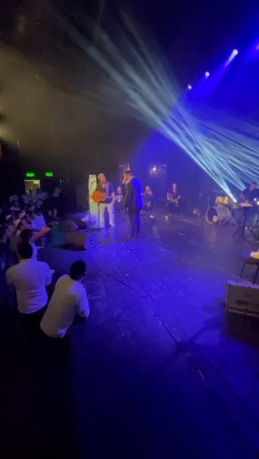 הזמרים דוד חפצדי וביני לנדאו בשירה מזרחית משותפת, במופע לבחורי ישיבות בהיכל התרבות בבת ים, ביוזמת המחלקה לתרבות תורנית.