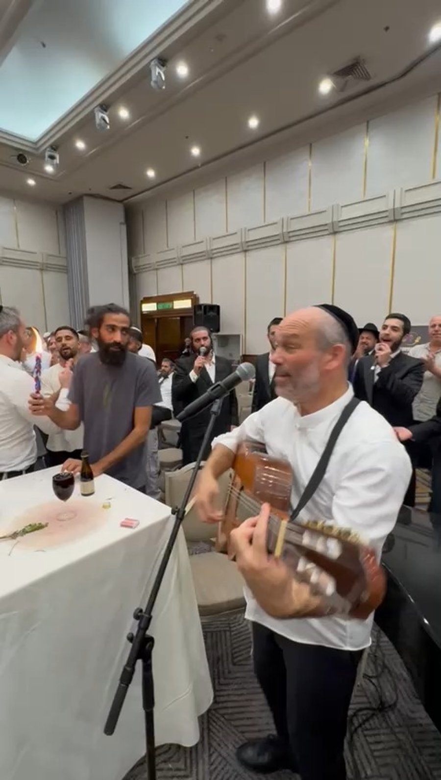 הזמר והיוצר יונתן רזאל בהבדלה מוזיקלית חוגג את חיסולו של מזכ"ל חיזבאללה חסן נסראללה, לאחר שבת חיזוק של ארגון 'קשר יהודי' לשורדי 'מסיבת הנובה', במלון 'רמדה' בירושלים.